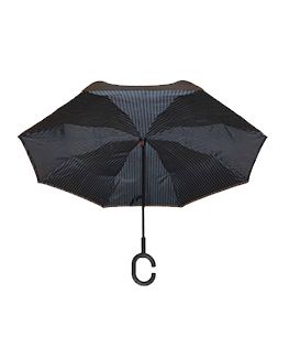 Unlike traditional umbrellas, this innovative Inverse Opening Flip-Resistant Umbrella closes inside out, preventing drips on your clothes, in your car and in your home. Its double layer, flip-resistant construction offers better protection from wind and rain. It features a unique ergonomic C-shaped handle that wraps around your wrist to free up your hands. Easy push button for manual opening and closing.